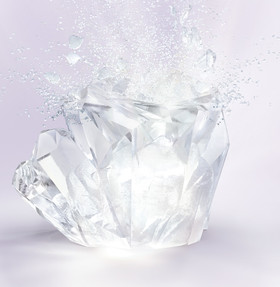 Der Kristall und die Packshots wurden komplett CGI erstellt. Lediglich das Beauty wurde fotografiert und in der Post zusammengeführt und verfeinert.