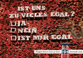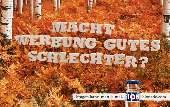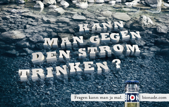 Für die aktuelle BIONADE-Kampagne "Fragen" erstellte das Team um recomCGI und recomPOST in mühevoller Klein- und Feinarbeit insgesamt 10 Papierbuchstaben-Motive in CGI.Nach der vorangegangenen Stilfindungsphase, in der BeschaffenheitOptik und Materialdefinitionen der Buchstaben bestimmt worden waren, wurden komplette Fragesätze teils an Fäden im Wald hängend, im Seerosenteich schwimmend, auf Holsstangen gepfählt oder mit Eiszapfen beeist in CGI erstellt und aufwändig in der Post, in die 10 Backplates, von denen das grüne Waldmotiv durch Michael Schnabel bereitgestellt wurde, integriert und veredelt.
