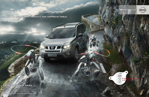 Für die NISSAN Xtrail-Kampagne wurden Fahrzeug, Roboter und diverse Wasser-Effekte per CGI generiert.