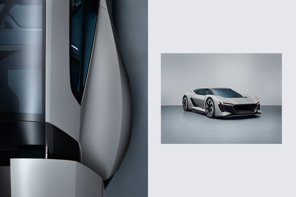 During the prestigious Pebble Beach Automotive week Audi unveiled its PB18 e-tron, a high-performance, all electric concept supercar that focuses on a superior race style driving experience. Lacking any comfort features and against the trend toward autonomous driving, the motorist is in full control of the steering and brakes from the centred seat of the laterally adjustable monocoque.Robert Grischek took the futuristic sports car into the studio to explore its low body contours and zoomed in on some unusual details for Audi Magazine. Members from our Stuttgart and London studios fine tuned the stylish series in post.