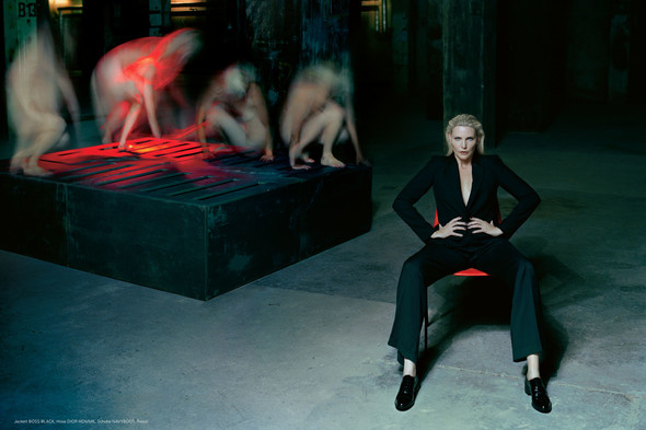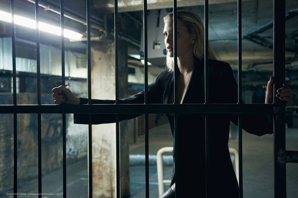 Techno was born in Berlin. And so was Nadja Auermann, the city’s most famous blond beauty and Helmut’s most Newtonesque face and figure. The hardcore electronic music revolution named Techno (who had ever heard of 140 beats per minute?) exploded onto a world stage, an audio blitzkrieg born in places like Tresor, a dank, blood red club located in a discarded department store on Potsdamer Platz. Berlin’s convoluted post-War history left the city riddled with cavernous and forgotten industrial plants, warehouses, cellars, banks and even ministries. The raw spaces almost demanding a new darker club scene and musical genre. Techno took an electronic twist in clubs like Berghain and Cookies, by now internationally renowned buzzwords – the Studio 54s of rave nation. Clubbing in Berlin is like entering a mysterious underworld where rules are off and everything goes. To celebrate Blonder Techno, Ralph Mecke club hopped Berlin, shooting Nadja in the depths of this subversive eroticism in some of the season’s sculptured chic, sinful lace and classy tuxedos.